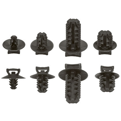 Die Tannenbaum-Kabelbinderbefestigung ist schwarz und erfordert einen Panellochdurchmesser von 0,25 bis 0,28 Zoll (6,3 bis 7,1 mm). Das Material ist wetterbeständiges Nylon 6.6, das mechanische Stärke, Hitze- und Abnutzungsbeständigkeit und Steife verstärkt. Wird in Verpackungen mit 1000 Stück geliefert.