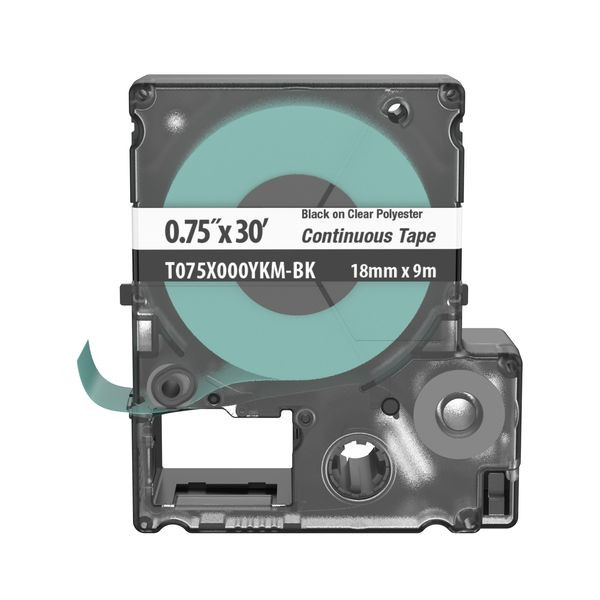 Die Kassette T075X000YKM-BK mit durchlaufendem Band beinhaltet sowohl Etikettenmaterial als auch Band für das einfache Wechseln der Etiketten. Benutzerdefinierte Rohrmarkierungen, Spannungsmarkierungen, Schilder, Behältermarkierungen und Netzwerkkennzeichnungsetiketten auf Anfrage. Nur für flache Etikettenanwendungen. Zur Verwendung mit MP100- und MP300-Druckern. Polyester. 0,75" x 30' (18 mm x 9,1 m). Farbe Schwarz auf Klar. 1 Kassette pro Packung.