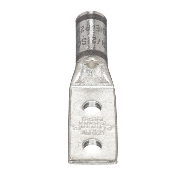 Zwei Löcher, Standardtrommelkabelschuh mit Fenster, Kabel Nr. 4 – Nr. 3 AWG STR, Nr. 2 AWG SOL, Nr. 10 Schraubloch, Lochabstand 0,63.
