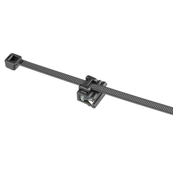 Panduit SVSA12-2S-D0 Solar-Version Edge Clip Cable Tie Assemblies are ideal for mounting to the edge of a solar module frame and use the cable tie to suspend PV wire runs. Edge Clip mount is made of weather resistant Nylon 6.6 housing and a zinc-plated steel clip. For frame edge .028" (.7mm) to .118" (3mm) thick. Pre-assembled with a contractor-grade cable tie made of weather-resistant nylon 6.6 on side face of mount and positions wire runs parallel to frame edge. 500 pieces per bag.