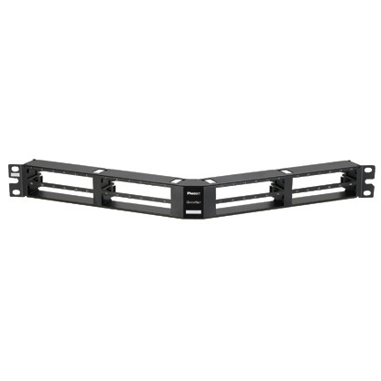 Das abgewinkelte QuickNet™ Patchpanel nimmt vorkonfektionierte QuickNet Kassetten und Patchpaneladapter auf. Diese Patchpanels mit hoher Dichte belegen nur wenig Platz im Rack und erleichtern durch die abgewinkelte Ausführung die Kontrolle des richtigen Biegeradius. Das minimiert den Bedarf an horizontaler Kabelführung. Das Patchpanel bietet 48 Ports in 1 RU und ist schwarz.