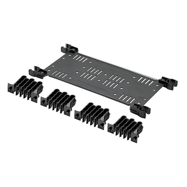 Die HD Flex™ Rückseiten-Kabelführung eignet sich für die vertikale PEV12-Kabelführung, Sie umfasst vier Übergangsmanager mit 18 Positionen und einem Clip. Schwarz.