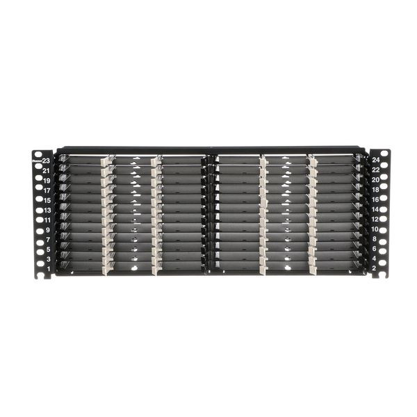 Das HD Flex™ Glasfaserpanel benötigt 4 RU und nimmt bis zu 72 HD Flex™ Kassetten mit 4 Ports oder Glasfaseradapterpanels für eine maximale Dichte von 576 Glasfaserleitern auf.