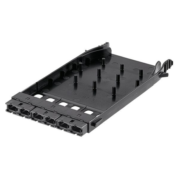 Dieses HD Flex™ Glasfaser-Adapterpanel verfügt über 6 Anschlüsse mit Typ-A-Adaptern. Mit Key-up-auf-Key-down-Adaptern, Farbe Schwarz.