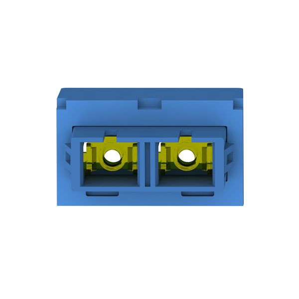 Der Mini-Com™ Einzelmodus-Duplex-SC-Adapter ist ein Adapter mit kleinem Formfaktor (SFF) mit integrierten Panel-Halteklemmen und ist mit TIA EIA-605 FOCIS-10 kompatibel. Er verbindet zwei SC-Anschlusspaare in einem Modulsteckplatz, mit einem blauen Glasfaseradapter sowie einem blauen Modul und hat Teilhüllen aus Zirkonoxid.