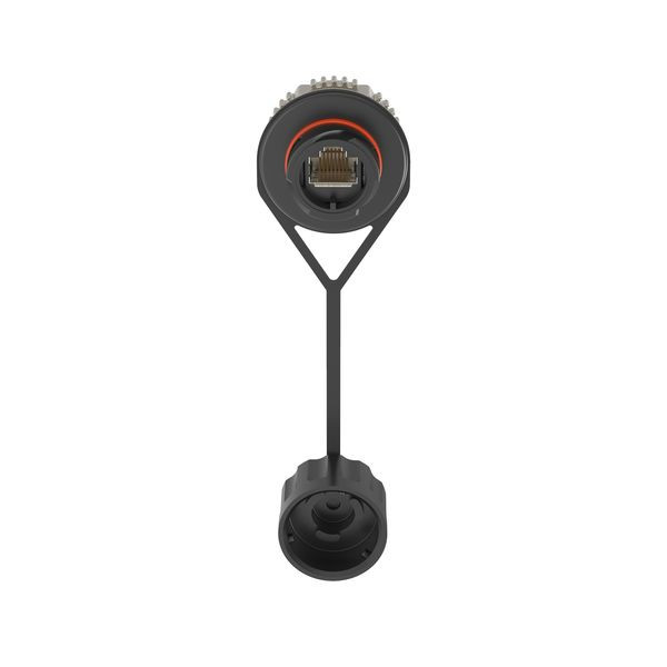 Die RJ-45-Buchse und -Stecker des abgeschirmten Kopplers der Kategorie 6A mit Trennwand nutzen eine IP67-Dichtung und schützen vor Staub und dem vorübergehendem Eintauchen in Wasser. Abschluss an einem 4-paarigen Twisted-Pair-Kabel 24 AWG, 100 Ohm, kommt ohne Auflegewerkzeug aus. Die Schutzkappe schützt den Steckverbinder und Stecker im nicht verbundenen Zustand nach IP67. Der abgeschirmte Koppler mit Trennwand ist schwarz.