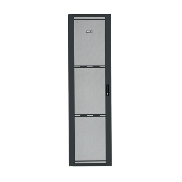 Perforierte Einzelscharniertür für 600 mm breiten Schrank mit 45 RU. Farbe: Schwarz