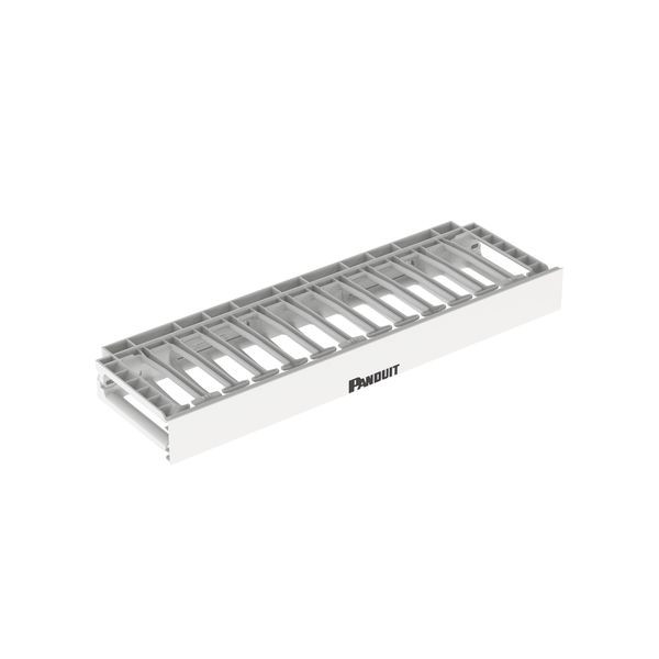 Die horizontale NetManager™ Kabelführung für hohe Kapazität organisiert und schützt kosteneffektiv Kupfer- und Glasfaserkabel in jedem standardmäßigen EIA 19" (483mm)-Rack oder Schrank. Große Öffnungen an den vorderen Fingern ermöglichen die komfortable Aufnahme von Kabeln der Kategorie 6 und 6A, wodurch sich Installationszeit und Instandhaltungskosten verringern lassen. Die Einseiten-Kabelführung ist 1 RU und verfügt nur über eine aufklappbare vordere Abdeckung. Die Führung ist weiß.