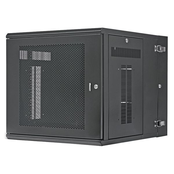 Der PanZone Wandmontageschrank mit perforierter Tür ist 30 Zoll tief und hat an der Vorder- und Rückseite schwenkbare Türen für den vollständigen Zugang zu den Netzwerkgeräten, was Umzüge, Erweiterungen und Veränderungen vereinfacht. Die abnehmbaren Seitenwände bieten Zugang zur Kabelführung. Das Gehäuse ermöglicht die korrekte Klimakontrolle für den Einsatz mit verschiedenen Netzwerkgeräten. Das 12-RU-Gehäuse ist auf 250 lbs bewertet und schwarz.