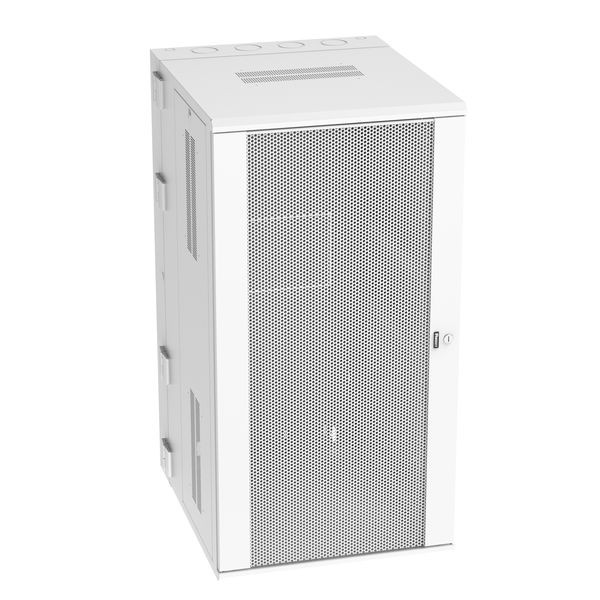Der PanZone Wandmontageschrank mit Türfenster ist 30 Zoll tief und hat an der Vorder- und Rückseite schwenkbare Türen für den vollständigen Zugang zu den Netzwerkgeräten, was Umzüge, Erweiterungen und Veränderungen vereinfacht. Die abnehmbaren Seitenwände bieten Zugang zur Kabelführung. Das Gehäuse ermöglicht die korrekte Klimakontrolle für den Einsatz mit verschiedenen Netzwerkgeräten. Das 26-RU-Gehäuse ist auf 350 lbs bewertet und weiß.
