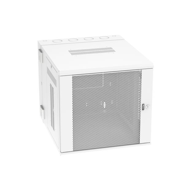 Der PanZone Wandmontageschrank mit Türfenster ist 30 Zoll tief und hat an der Vorder- und Rückseite schwenkbare Türen für den vollständigen Zugang zu den Netzwerkgeräten, was Umzüge, Erweiterungen und Veränderungen vereinfacht. Die abnehmbaren Seitenwände bieten Zugang zur Kabelführung. Das Gehäuse ermöglicht die korrekte Klimakontrolle für den Einsatz mit verschiedenen Netzwerkgeräten. Das 12-RU-Gehäuse ist auf 250 lbs bewertet und weiß.