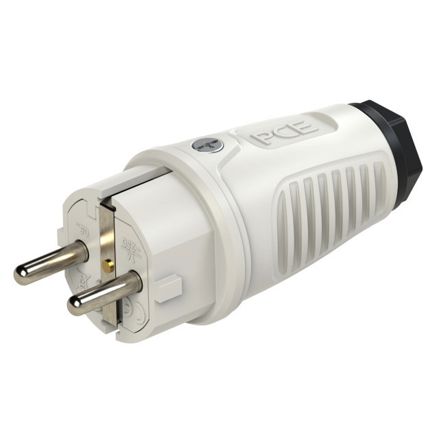 Schutzkontaktstecker Serie TAURUS2 - Gummi; Farbe (Haube/Ring): hellgrau/schwarz; Material (Haube/Kontaktträger): TPE/PA6; Schutzkontaktsystem: österr./deutsch ; 16A / 250V AC / 3p (2P+E), Schutzart: IP54