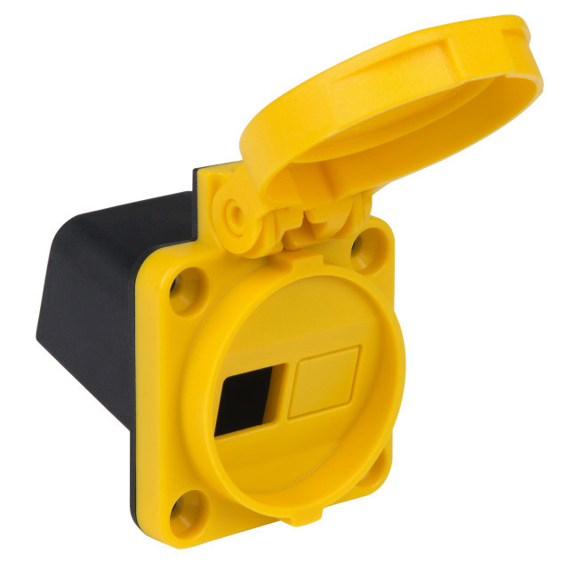 Anbaudose modular mit Klappdeckel,; Farbe: gelb, Gehäusematerial: PA6; 1xÖffnung (2te Öffnung zum Ausbrechen); geeignet für Keystone Module ; inkl. Gummidichtung mit 2xKabeleinlass; Schutzart: IP54 (Deckel geschlossen)