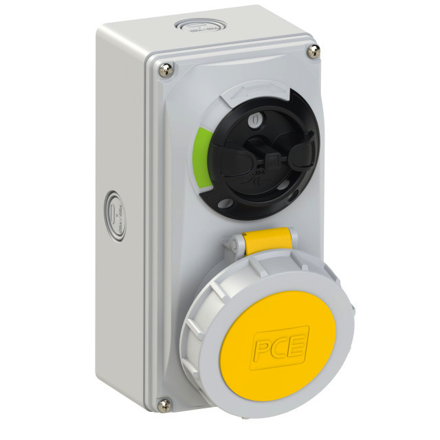 CEE-Steckdose abschaltbar kompakt 16A 5p 4h IP66/IP67 Knock Out; Gehäusematerial: PA6 + PC/ABS; Nennstrom: 16A; Polzahl: 5 (3P+N+PE); Uhrzeit-Stellung: 4h; Nennspannung/Frequenz: 57/100V~ - 75/130V~ / 50+60Hz; Kontakte: Messing vernickelt; Anschlusstechnik: Schraubklemmen; Wanddose mit Ausbrüchen, mechanisch verriegelt; Schalter: EIN/AUS PCE-Merz ML0; EN 60947-3; AC22A, 10kA; Schutzart: IP66/IP67