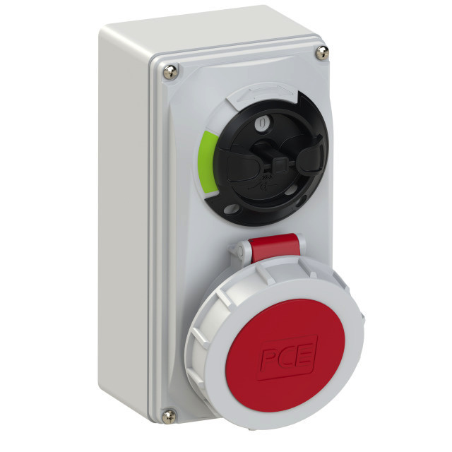 CEE-Steckdose abschaltbar kompakt 16A 5p 6h IP66/IP67; Gehäusematerial: PA6 + PC/ABS; Nennstrom: 16A; Polzahl: 5 (3P+N+PE); Uhrzeit-Stellung: 6h; Nennspannung/Frequenz: 200/346V~ - 240/415V~ / 50+60Hz; Kontakte: Messing vernickelt; Anschlusstechnik: Schraubklemmen; Wanddose, mechanisch verriegelt; Schalter: EIN/AUS PCE-Merz ML0; EN 60947-3; AC22A, 10kA; Schutzart: IP66/IP67