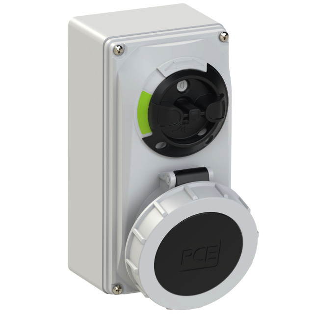 CEE-Steckdose abschaltbar kompakt 32A 4p 7h IP66/IP67; Gehäusematerial: PA6 + PC/ABS; Nennstrom: 32A; Polzahl: 4 (3P+PE); Uhrzeit-Stellung: 7h; Nennspannung/Frequenz: 480-500V~ / 50+60Hz; Kontakte: Messing vernickelt; Anschlusstechnik: Schraubklemmen; Wanddose, mechanisch verriegelt; Schalter: EIN/AUS PCE-Merz ML0; EN 60947-3; AC22A, 10kA; Schutzart: IP66/IP67