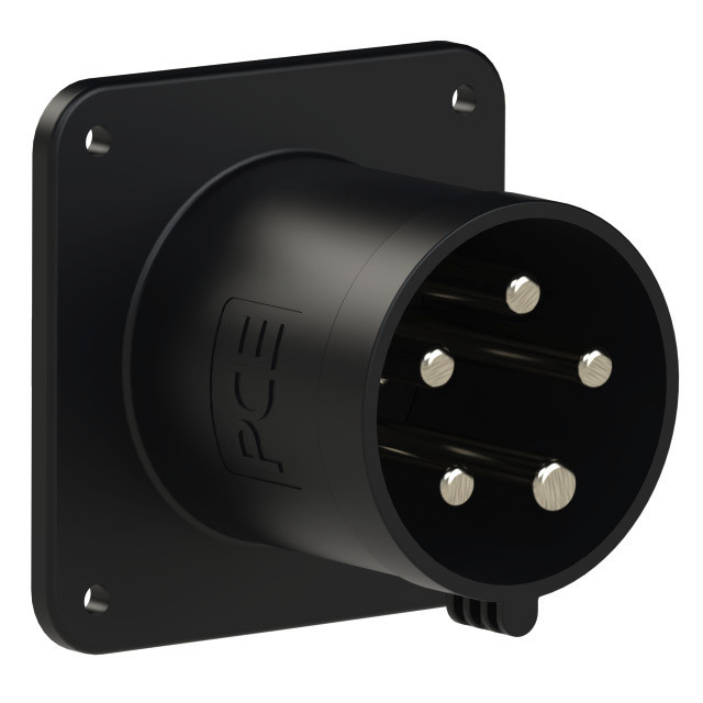 CEE-Anbaugerätestecker gerade 63A 5p 7h IP44 POWER TWIST; Gehäusematerial: PA6; Nennstrom: 63A; Polzahl: 5 (3P+N+PE); Uhrzeit-Stellung: 7h; Nennspannung/Frequenz: 277/480V~ - 288/500V~ / 50+60Hz; Kontakte: Messing vernickelt, mit Pilotkontaktstift; Anschlusstechnik: Rahmenklemmen mit Schrauben; Abmessungen (Flansch/Bohrung): 100x100 mm / 80x80 mm; Schutzart: IP44
