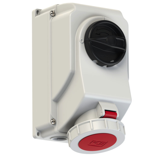 CEE-Steckdose abschaltbar 32A 5p 6h IP66/IP67; Gehäusematerial: PC/ABS; Nennstrom: 32A; Polzahl: 5 (3P+N+PE); Uhrzeit-Stellung: 6h; Nennspannung/Frequenz: 200/346V~ - 240/415V~ / 50+60Hz; Kontakte: Messing vernickelt; Anschlusstechnik: Schraubklemmen; Abschaltbare Wanddose, mechanisch verriegelt; Schalter: EIN/AUS PCE-Merz ML0; EN 60947-3; AC22A, 10kA; Leitungseinführung von oben, unten oder hinten (inkl. Blindverschraubung); Schutzart: IP66/IP67