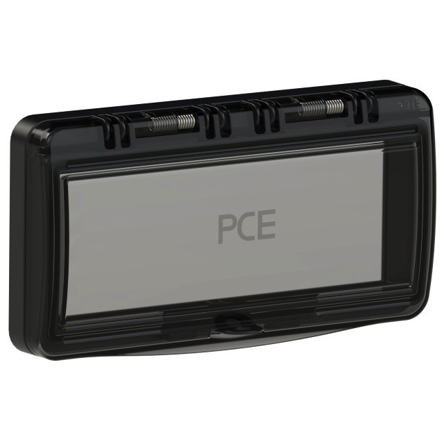 Klappfenster 9TE IP44/IP54 (schwarz); Material (Scheibe/Rahmen): Polycarbonat/PC-ABS; Abmessungen (BxHxT): 182x97x27mm; Schutzart: IP44 (horizontal), IP54 (vertikal)