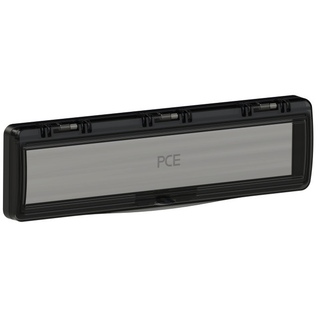 Klappfenster 18TE IP44/IP54 (schwarz); Material (Scheibe/Rahmen): Polycarbonat/PC-ABS; Abmessungen (BxHxT): 344x97x27mm; Schutzart: IP44 (horizontal), IP54 (vertikal)