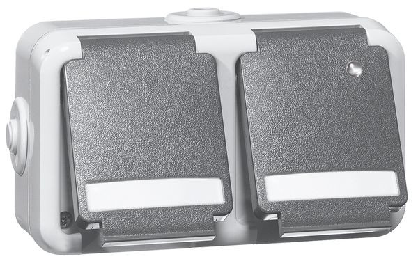 | Kurzbeschreibung | Steckdose SCHUKO 2fach, grau,Beschriftungsfeld, Kontrolllicht |