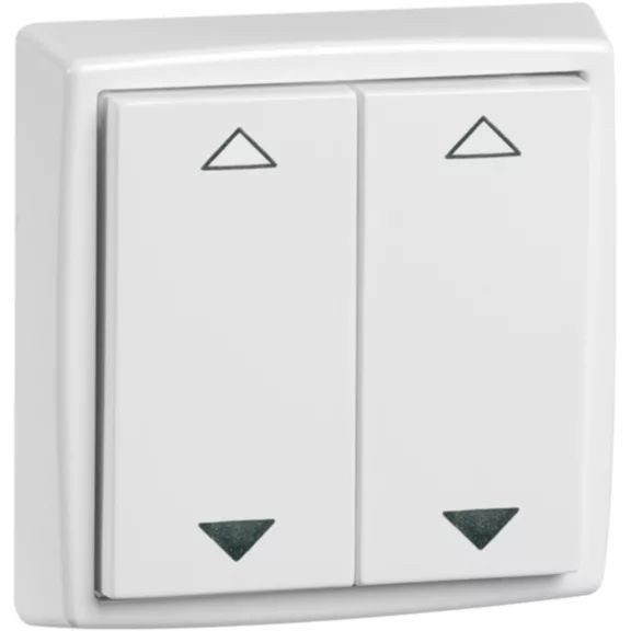 | Kurzbeschreibung | EnOcean Easyclick Wandsender, 61 x 61mm, 4 Kanal, reinweiß, Symbol AUF und AB |