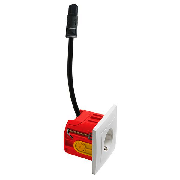 bestehend aus: SCHUKO Steckdose mit Schraubklemmen, 2-polig, 10/16 A 250 V , im 1 -fach Rahmen, mit Anschlusskabel und WAGO WINSTA RD (rund) Steckverbinder, Kabellänge 30 cm und Brandschutz Attema-Dose UHW