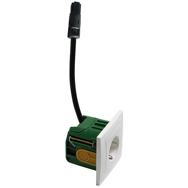 bestehend aus: SCHUKO Steckdose mit Schraubklemmen, 2-polig, 10/16 A 250 V , im 1 -fach Rahmen, mit Anschlusskabel und WAGO WINSTA RD (rund) Steckverbinder, Kabellänge 30 cm und halogenfreier Attema-Dose UHW50