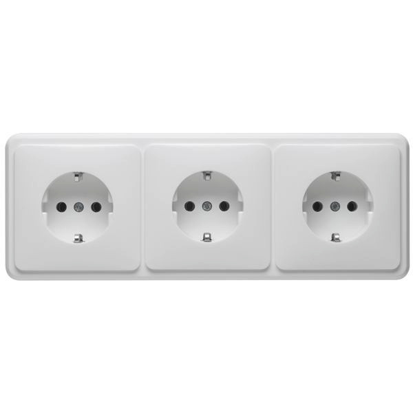 bestehend aus: (von links nach rechts) 3 -fach SCHUKO Steckdose mit Schraubklemmen, 2-polig, 10/16 A 250 V , im 3 -fach Rahmen, mit Wieland gesis GST18 Steckverbinder, und halogenfreier Attema-Dose UHW50, Ausführung horizontal