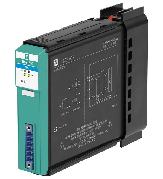 2-kanalig, Ausgänge Ex ia, Montage in geeigneten Gehäusen in Zone 1, Modul unter Spannung austauschbar (hot swap), Explosionsschutz: Ex ia, Feldgerät: Magnetventil, Feldgerät [2]: akustischer Alarm, Feldgerät [3]: visueller Alarm