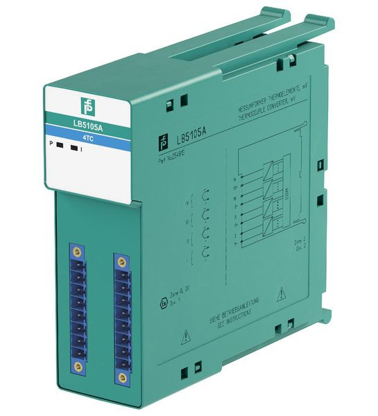 4-kanalig , Eingänge Ex ia, Montage in Zone 2, Class I/Div.2 oder im sicheren Bereich, Messumformer für Thermoelemente und mV-Signale, Explosionsschutz: Ex ia, Vergleichsstelle (VST): interne Klemmstellenkompensation oder externe Vergleichsstelle, Feldgerät [2]: Thermoelement, Feldgerät [4]: mV-Geber, Vergleichsstelle (VST): interne Klemmstellenkompensation oder externe Vergleichsstelle