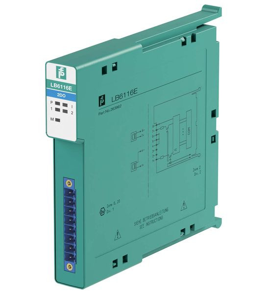 2-kanalig, Ausgänge Ex ia, Montage in Zone 2, Class I/Div.2 oder im sicheren Bereich, Leitungsfehlerüberwachung im ein- und ausgeschalteten Zustand, Explosionsschutz: Ex ia
