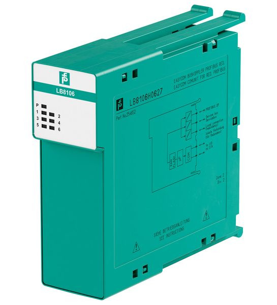 Schnittstelle zwischen E/A-Modulen und Leitsystem/Steuerung, Buskoppler für 80 analoge oder 184 binäre Kanäle, Kommunikation über PROFIBUS DP, Montage in Zone 2, Class I/Div.2 oder im sicheren Bereich, Feldbustyp: PROFIBUS DP/DP-V1