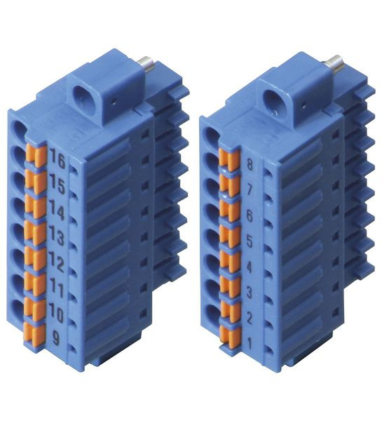 Federklemme, Für LB- und FB-Module, 2 x 8-polig, Beschriftung 1 ... 8 und 9 ... 16, Farbe blau, Für Ex-ia- oder Ex-ib-Anwendungen, Bauform: Federklemme
