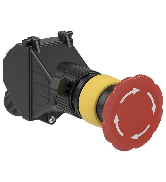 NOT-AUS-Pilztaster 55 mm, rot, Drehentriegelung - 1x Schließer / 1x Öffner, Ex-de- und Ex-tb-zertifiziert, Komplett bescheinigtes explosionsgeschütztes Betriebsmittel, Gehäuse aus Polyamid, zum Einbau in Schalttafel, Montage in Zone 1, Zone 2, Zone 21 und Zone 22, Kabelverschraubung M20 integriert in Schutzkappe, Schutzart IP66, Funktion: Pilztaster 55 mm, Gehäuse: Polyamid (PA), Kennzeichnung: [exsign] II 2 GD
