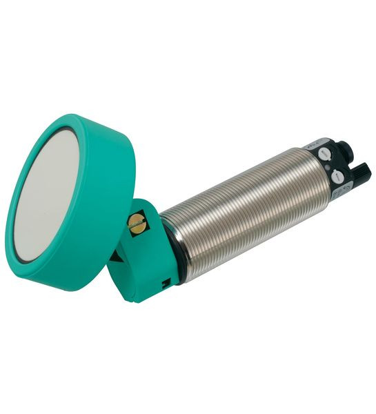 Ultraschall-Reflexionstaster mit schwenkbarem Wandler, Analogausgang 4 ... 20 mA, 1 Schaltausgang, Synchronisationsmöglichkeiten, Baureihe: UC-30GM70, Bemessungsbetriebsspannung: 24 V DC, Betriebsspannung: 20 ... 30 V DC (inklusive Restwelligkeit), Schnittstellentyp: Infrarot, Ausgangstyp: 1 Schaltausgang pnp, Schließer ( Öffner parametrierbar ), Ausgangstyp: 1 Stromausgang 4 ... 20 mA , steigend/fallend parametrierbar, UL-Zulassung: cULus Listed, Class 2 Power Source