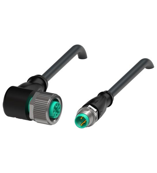 Verbindungskabel M12-Buchse gewinkelt auf M8-Stecker gerade A-kodiert, 3-polig, PUR-Kabel schwarz, UL-zugelassen, schleppkettentauglich, torsionsgeeignet