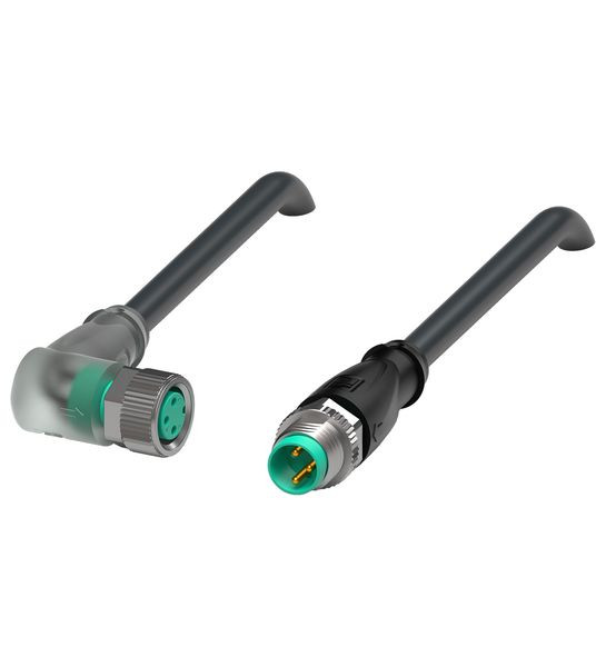Verbindungskabel M8-Buchse gewinkelt A-kodiert LED 3-polig auf M8-Stecker gerade A-kodiert 3-polig, PUR-Kabel schwarz, UL-zugelassen, schleppkettentauglich, torsionsgeeignet