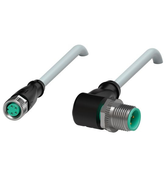 Verbindungskabel M8-Buchse gerade auf M12-Stecker gewinkelt A-kodiert, 4-polig, PVC-Kabel grau