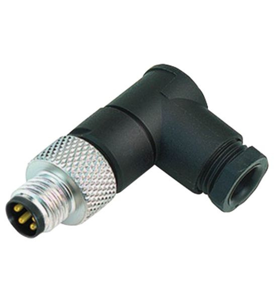 Kabelstecker M8 gewinkelt A-kodiert 4-polig, für Kabeldurchmesser 3,5 - 5 mm, konfektionierbar, Lötverbindung