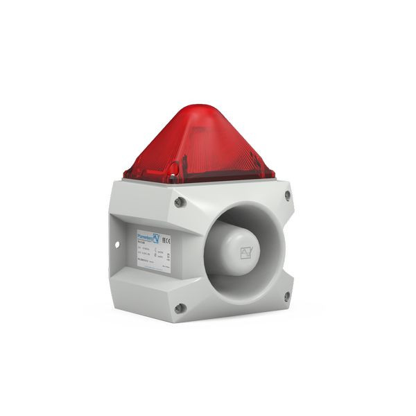 Kompakter LED-Schallgeber in rot mit roter Haube