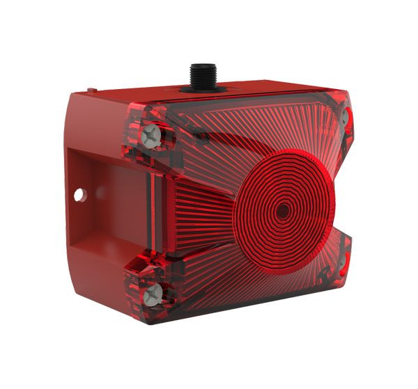 Die kompakte Blitzleuchte mit roter Haube und rotem Sockel passt sich nicht nur vielen Anwendungen an, sondern besticht insbesondere durch sichere und einfache Montage mit M12 Anschluss