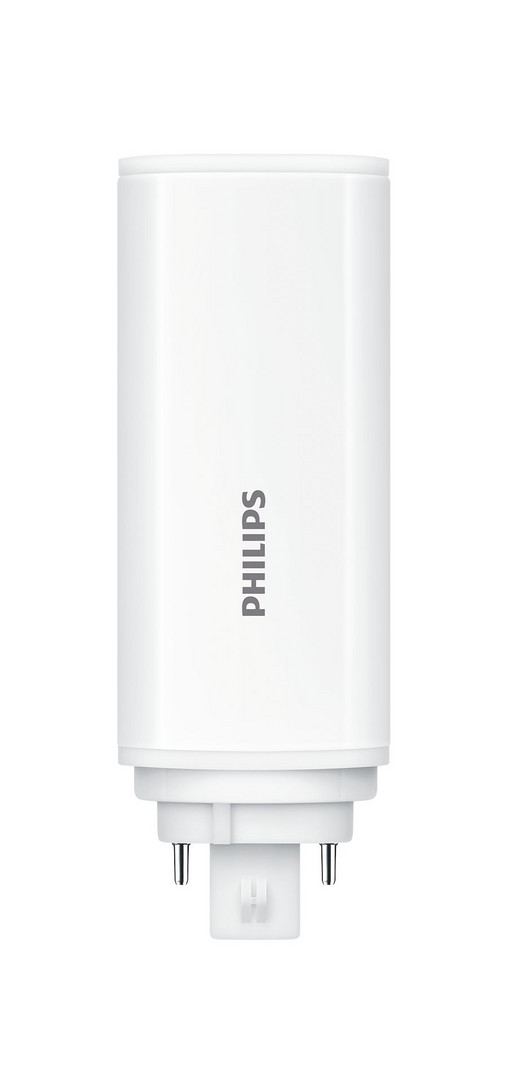 LED Kompaktlampe Philips CorePro PLT 4P, LED Alternative für Kompaktleuchtstofflampe Philips PL-T 18W und OSRAM DULUX T/E 18W, Anschluss an EVG/230V, 720lm, Farbtemperatur 3000K, Leistung 6.5W, Farbwiedergabeindex CRI82, mittlere Nutzlebensdauer 30000h, Energieeffizienzklasse E, Sockel GX24Q-2 rotierbar, 120° Ausstrahlwinkel, Material Kunststoff, nicht dimmbar, photobiologische Sicherheit nach EN 62471 RG1, SDCM<6, Leistungsfaktor 0.9, Schutzart IP20