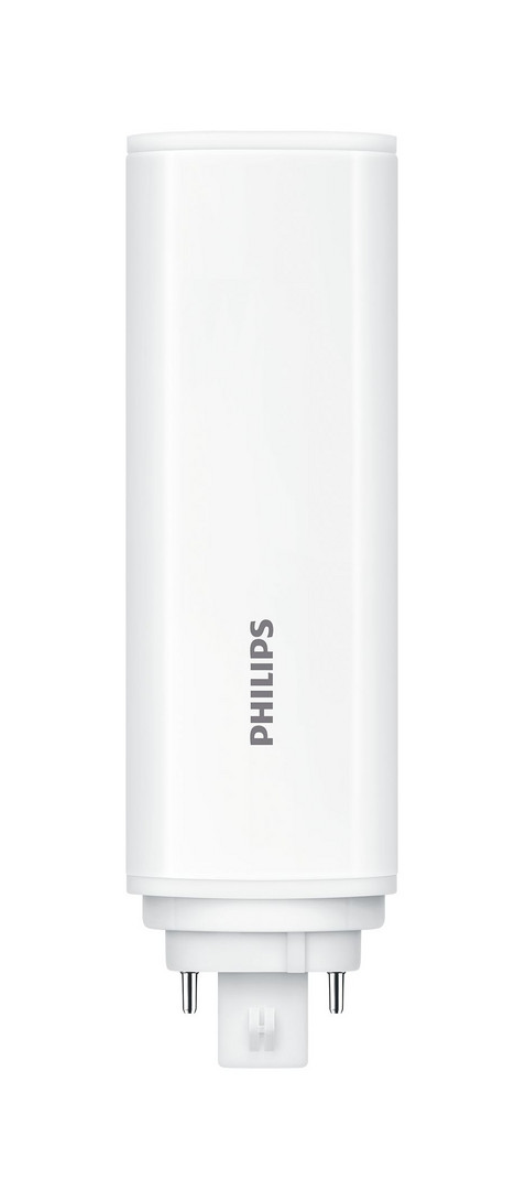 LED Kompaktlampe Philips CorePro PLT 4P, LED Alternative für Kompaktleuchtstofflampe Philips PL-T 26W und OSRAM DULUX T/E 26W, Anschluss an EVG/230V, 990lm, Farbtemperatur 3000K, Leistung 9W, Farbwiedergabeindex CRI82, mittlere Nutzlebensdauer 30000h, Energieeffizienzklasse E, Sockel GX24Q-3 rotierbar, 120° Ausstrahlwinkel, Material Kunststoff, nicht dimmbar, photobiologische Sicherheit nach EN 62471 RG1, SDCM<6, Leistungsfaktor 0.9, Schutzart IP20