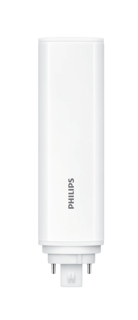 LED Kompaktlampe Philips CorePro PLT 4P, LED Alternative für Kompaktleuchtstofflampe Philips PL-T 32W und OSRAM DULUX T/E 32W, Anschluss an EVG/230V, 1800lm, Farbtemperatur 4000K, Leistung 13.5W, Farbwiedergabeindex CRI82, mittlere Nutzlebensdauer 30000h, Energieeffizienzklasse E, Sockel GX24Q-3 rotierbar, 120° Ausstrahlwinkel, Material Kunststoff, nicht dimmbar, photobiologische Sicherheit nach EN 62471 RG1, SDCM<6, Leistungsfaktor 0.9, Schutzart IP20