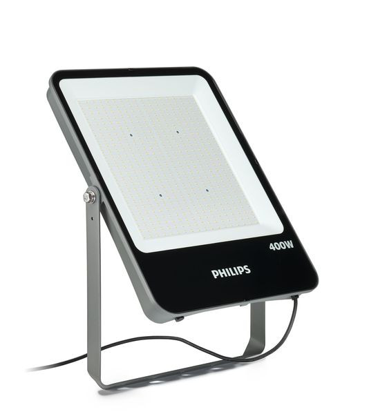 Ledinaire Scheinwerfer mit hoher Leistung, 637 mm x 52mm, Aluminiumdruckguss, Aluminium und Grau, Netzteil (Ein/Aus), 48000 lm, 400 W, 120 lm/W, 4000 K, (0.380,0.380) SDCM=5, CRI80, Symmetrisch, IP65 | Schutz gegen Eindringen von Staub, strahlwassergeschützt, IK08 | 6 J, SchutzklasseI, 6/4kV kV, Kabel (1,0m) ohne Steckverbinder, 3-polig, Freie Anschlussleitungen