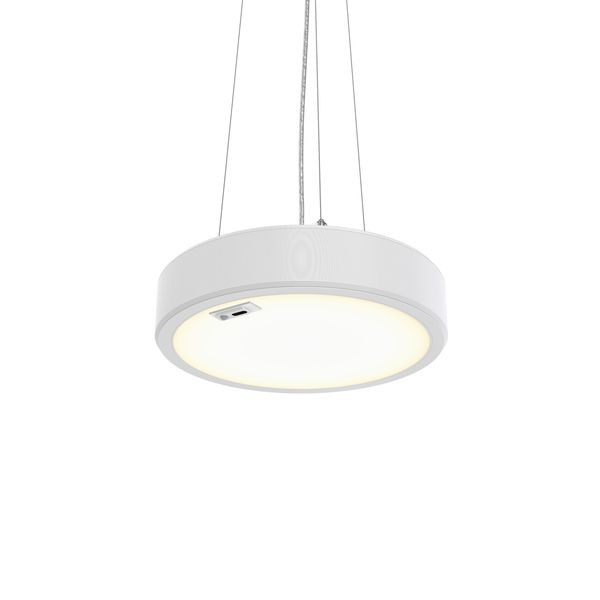 D390 mm: H85 mm, Polykarbonat, Weiß, Pendelleuchten, Sensorfähiger Interact System Ready Treiber, Interact SC1500 Multi-Sensorset, 1817 lm, 15.4 W, 118 lm/W, 3000 K, (0.44, 0.40) SDCM 3, CRI90, UGR19, Abstrahlungswinkel (90°), Mikro-Sechseck-Optik, Polystyrol, ?IP20 | Fernhalten von Fingern, IK04 | 0,5 J Standard plus, SchutzklasseII, 2 Steckverbinder, 2-polig, Durchgangsverdrahtung, 1-phasig, TP(b) diffuser flammability class