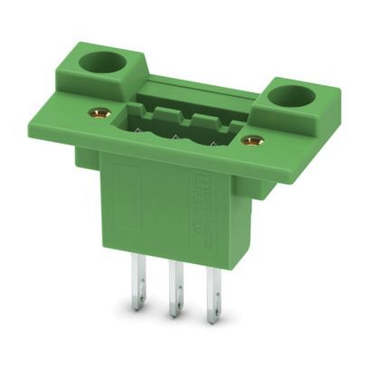 Durchführungsgrundleiste, Nennquerschnitt: 2,5 mm², Farbe: grün, Nennstrom: 12 A, Bemessungsspannung (III/2): 320 V, Kontaktoberfläche: Sn, Kontaktart: Stift, Anzahl der Potenziale: 3, Anzahl der Reihen: 1, Polzahl: 3, Anzahl der Anschlüsse: 3, Artikelfamilie: DFK-MSTB 2,5/..-GF, Rastermaß: 5 mm, Anschlussart: Löt-/Flachsteckanschluss, Montage: Direktmontage, Pin-Layout: Lineares Pinning, Pinlänge [P]: 9,3 mm, Anzahl der Lötpins pro Potenzial: 1, Stecksystem: COMBICON MSTB 2,5, Ausrichtung Steckgesicht: Standard, Verriegelung: Schraubverriegelung, Befestigungsart: Gewindeflansch, Verpackungsart: verpackt im Karton
