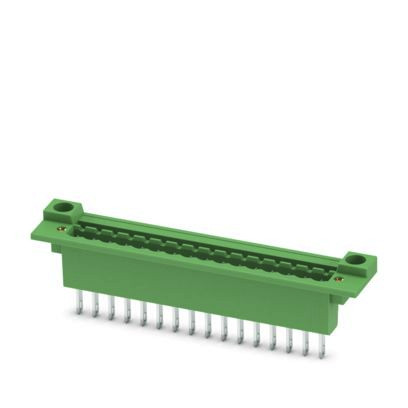 Durchführungsgrundleiste, Nennquerschnitt: 2,5 mm², Farbe: grün, Nennstrom: 12 A, Bemessungsspannung (III/2): 320 V, Kontaktoberfläche: Sn, Kontaktart: Stift, Anzahl der Potenziale: 16, Anzahl der Reihen: 1, Polzahl: 16, Anzahl der Anschlüsse: 16, Artikelfamilie: DFK-MSTB 2,5/..-GF, Rastermaß: 5 mm, Anschlussart: Löt-/Flachsteckanschluss, Montage: Direktmontage, Pin-Layout: Lineares Pinning, Pinlänge [P]: 9,3 mm, Anzahl der Lötpins pro Potenzial: 1, Stecksystem: COMBICON MSTB 2,5, Ausrichtung Steckgesicht: Standard, Verriegelung: Schraubverriegelung, Befestigungsart: Gewindeflansch, Verpackungsart: verpackt im Karton