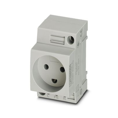 Steckdose, für Dänemark und weitere Länder, Steckgesicht Typ K, Farbe: grau, zur Montage auf Tragschiene im Service-Interface oder Direktmontage, Normen/Bestimmungen: SR 107-2-D1, Länderkennzeichen: Dänemark